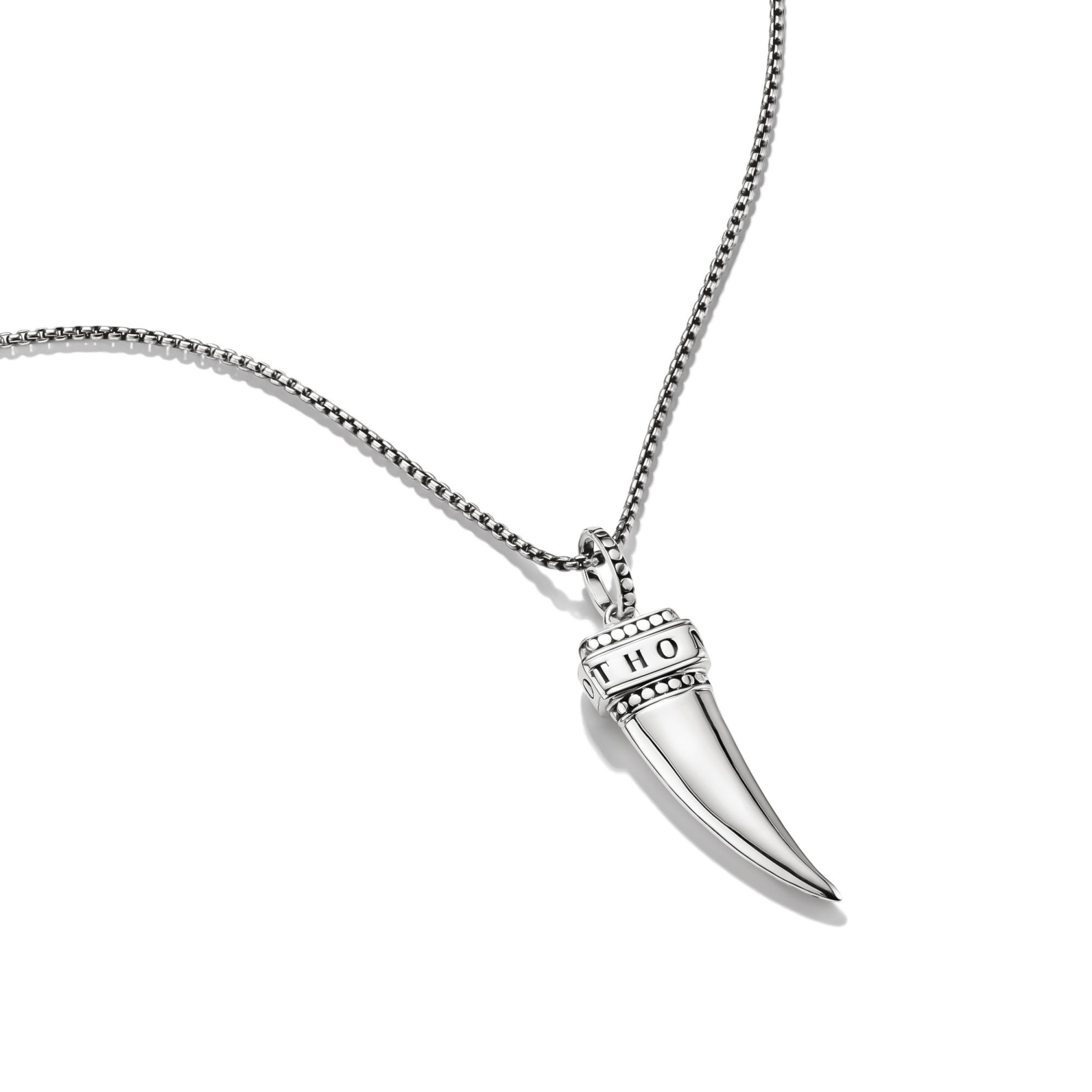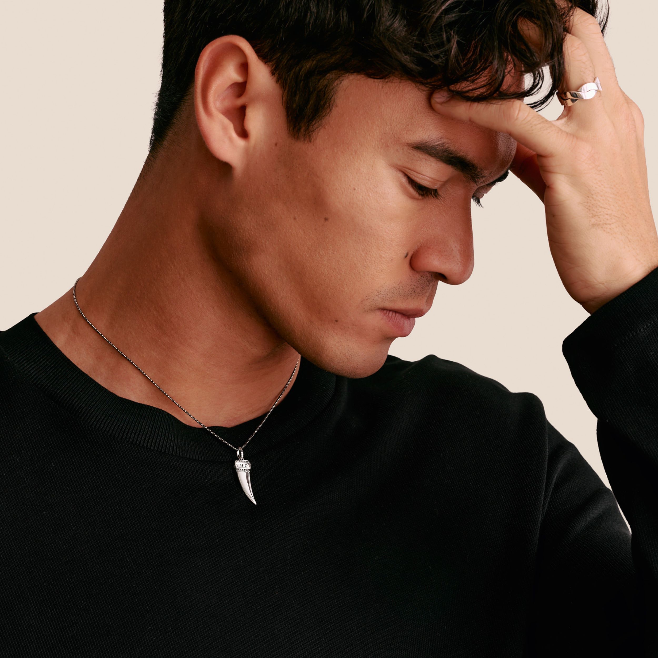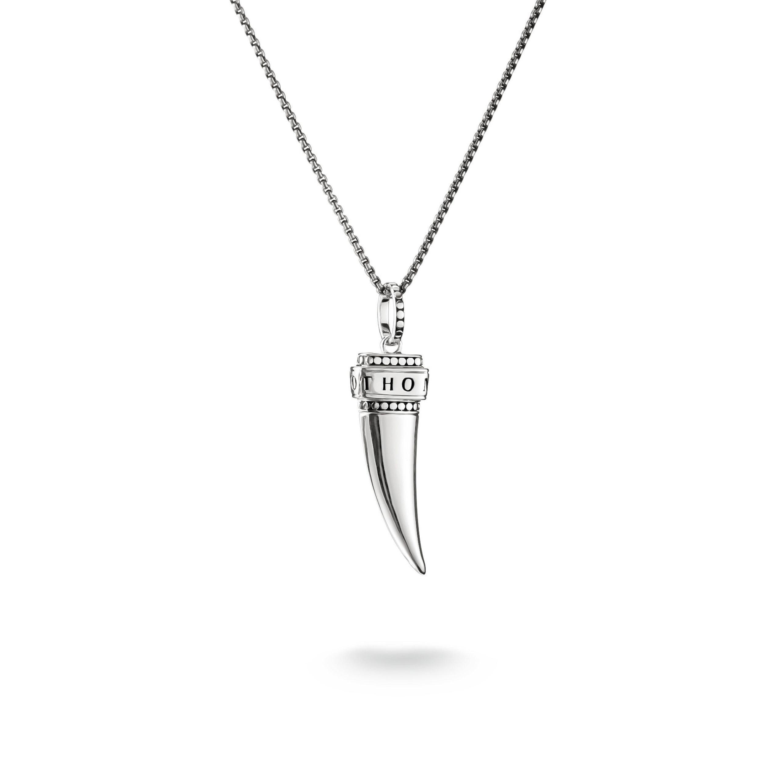 De doorlopende THOMAS SABO-gravure benadrukt het hoogwaardige vakmanschap en het iconische merkkarakter. Gedragen aan de 50 cm lange zilveren ketting wordt het stuk een opvallende uiting – of het nu alleen wordt gedragen of in lagen met extra kettingen voor een uitstraling vol karakter en individualiteit.