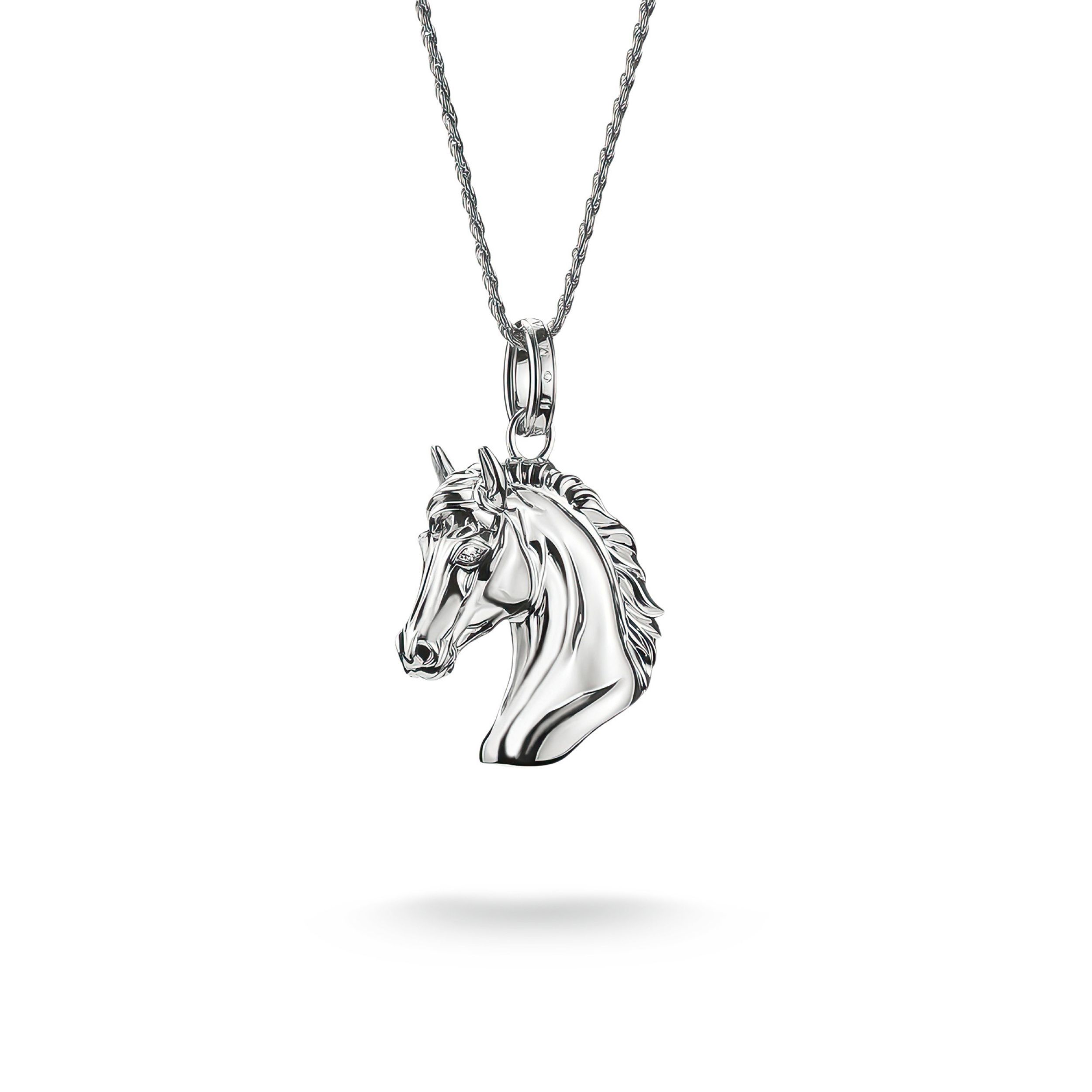 Een symbool van beweging en aanwezigheid: deze ketting, gemaakt van gerecycled 925 sterling zilver, heeft een gedetailleerd paardenhoofd—met vloeiende manen, fonkelende zirkonia ogen en zachte gravurelijnen in een driedimensionaal ontwerp. In de Elyndra-collectie staat het paard voor vrijheid, elegantie en innerlijke kracht—perfect voor vrouwen die hun pad met helderheid en dynamiek bewandelen. Draag dit stuk als een expressieve metgezel tussen wildheid en balans.