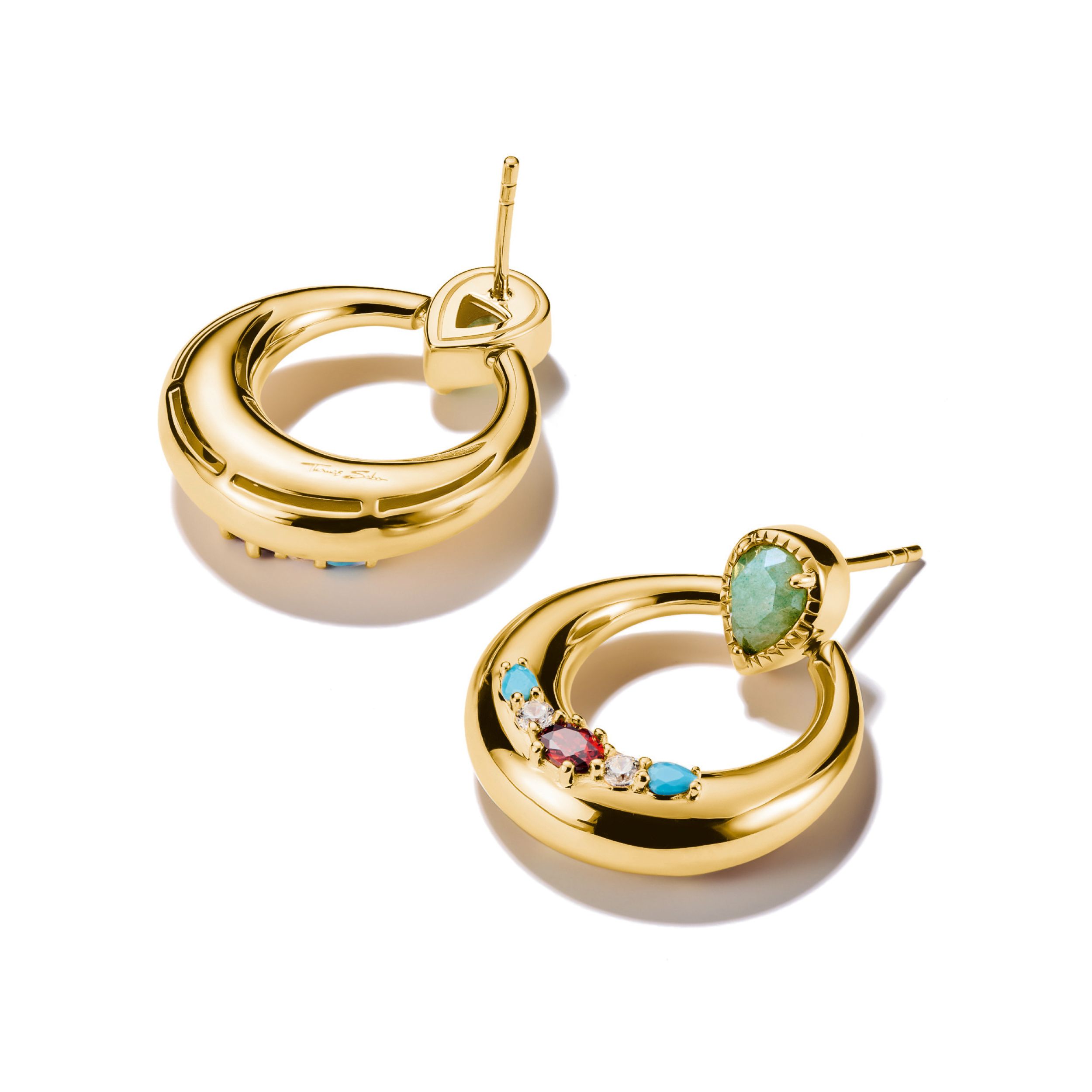 18 karaats verguldde halve hoepeloorbellen met groene, witte en rode stenen