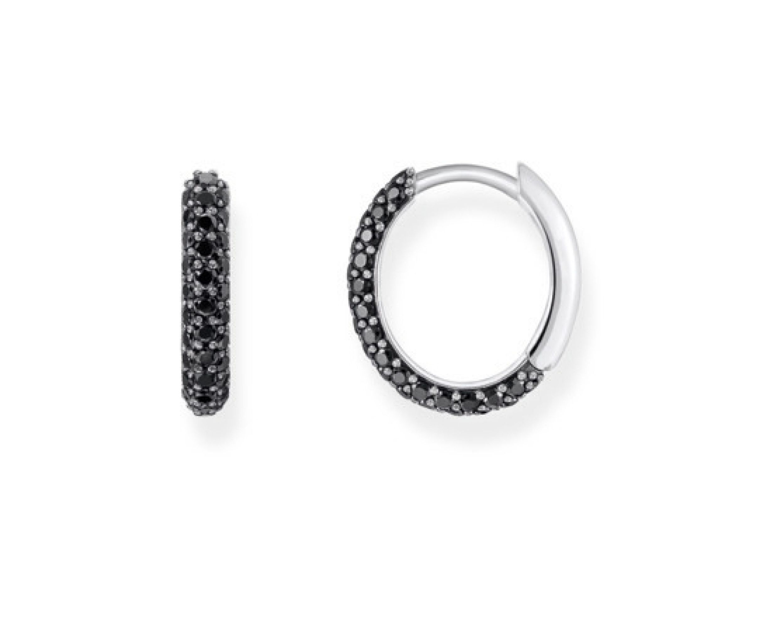 Zilveren oorringen met zwarte zirkonia pavé