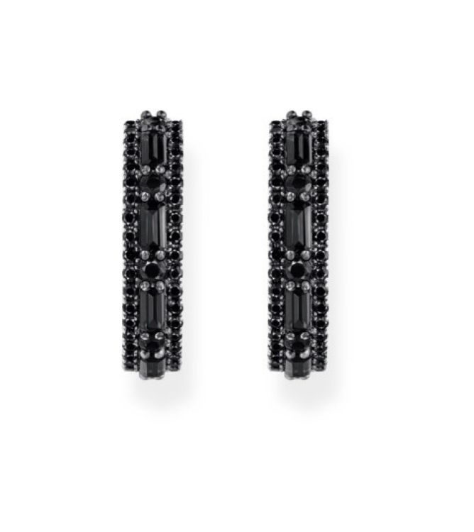 Deze oorringen zijn gemaakt van gerecycled, gezwart zilver en zijn een weerspiegeling van de elegantie van THOMAS SABO en hun vakmanschap dat elk ontwerp kenmerkt. Dit tijdloze sieraad kan een van je favoriete stukken worden die je altijd bij je zult dragen - een stuk dat geen extra inspanning vereist en dat altijd bij je stijl zal passen. Deze oorringen zijn uitbundig versierd met zwarte zirkonia stenen met een pavé zetting. In het midden zijn de grotere stenen met hun ronde en achthoekige slijpvorm enigszins subliem. Dankzij de kleinere stenen aan de zijkanten heeft dit ontwerp twee niveaus die ieders aandacht trekken. De achterkant van de oorringen imiteert de steenstructuur van de voorkant.