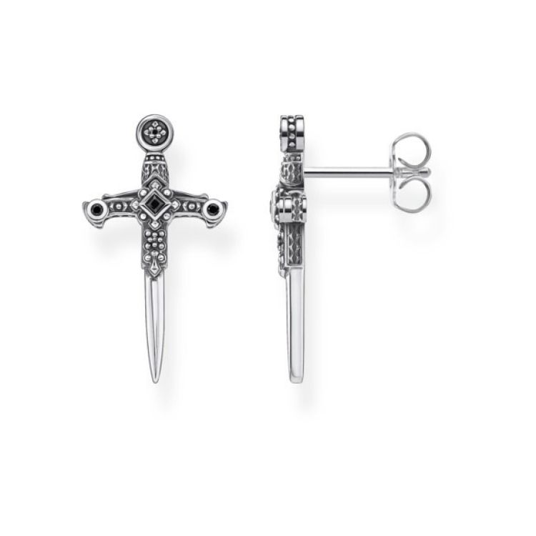 Schrijf elke dag je eigen saga: de fantasierijk vormgegeven oorstekers met zwaard van gezwart 925 sterling zilver zijn hiervoor het perfecte sieraad. Pommel, handvat en kruisbeschermer maken indruk met fijn bewerkte details. Sprankelende zwarte zirkonia stenen zijn in de ornamenten verwerkt en geven deze zilveren oorstekers een nobele uitstraling. Het ideaal van zwaardsymboliek wordt hier als een paar oorknopjes omgetoverd tot een coole fashion must-have: Creëer je persoonlijke fantasie-geïnspireerde look met deze oorstekers en voel je energieker en sterker met het symbool!