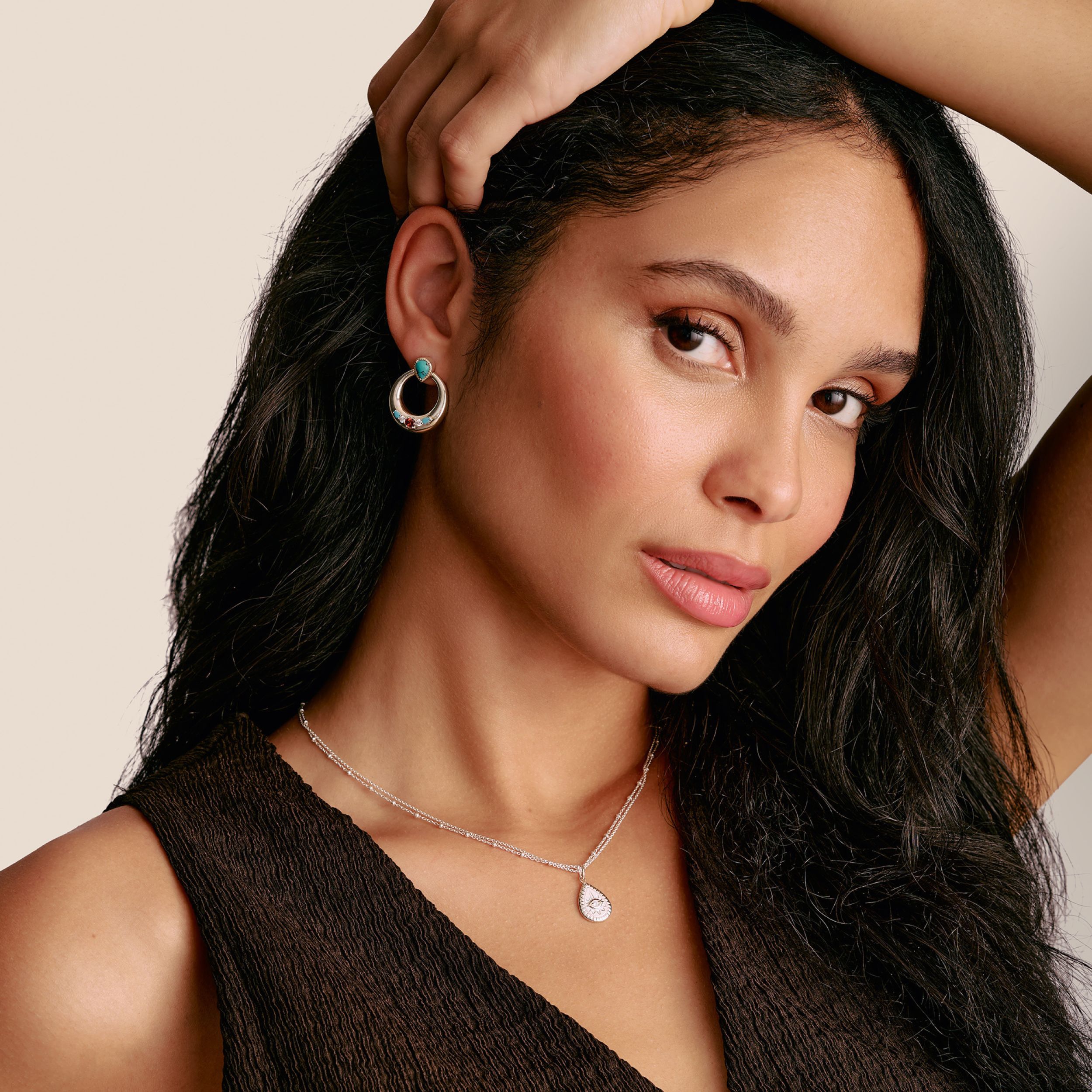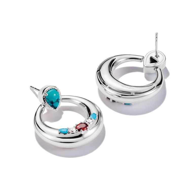 Turquoise drop stud, granaat- en witte zirkoniaaccenten