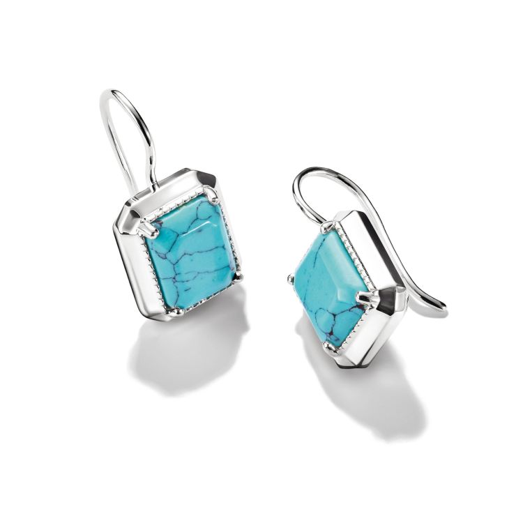 Deze Elyndra drop oorbellen in gerecyclede 925 sterling zilver geven je look een vleugje zomerse lichtheid. Een imitatie van turquoise steen in fijne achthoekige briljante slijpvorm schittert in een levendige tint en maakt een duidelijke stijlstatement.