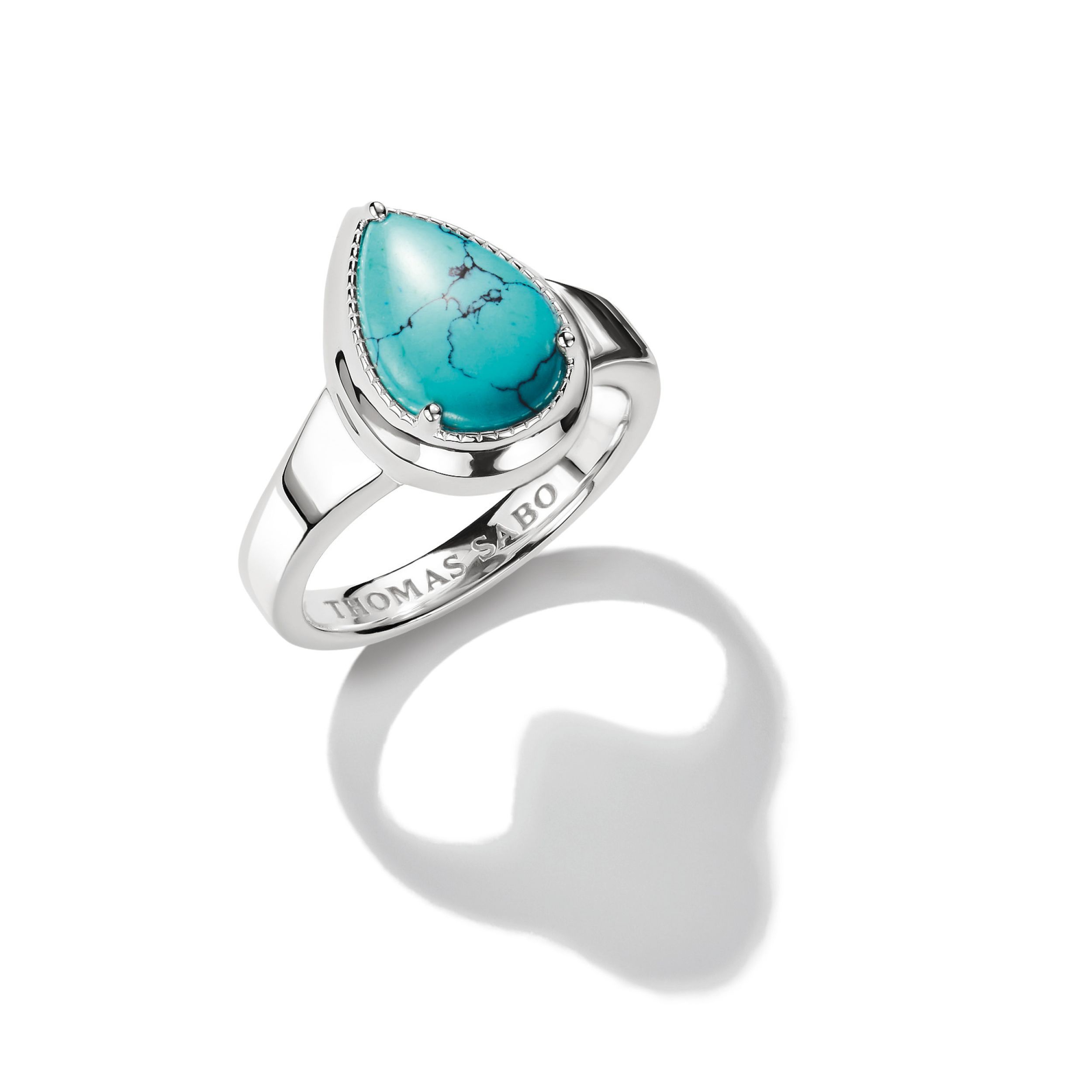 Zilveren ring met imitatie van turquoise tranenvormige steen Elyndra
