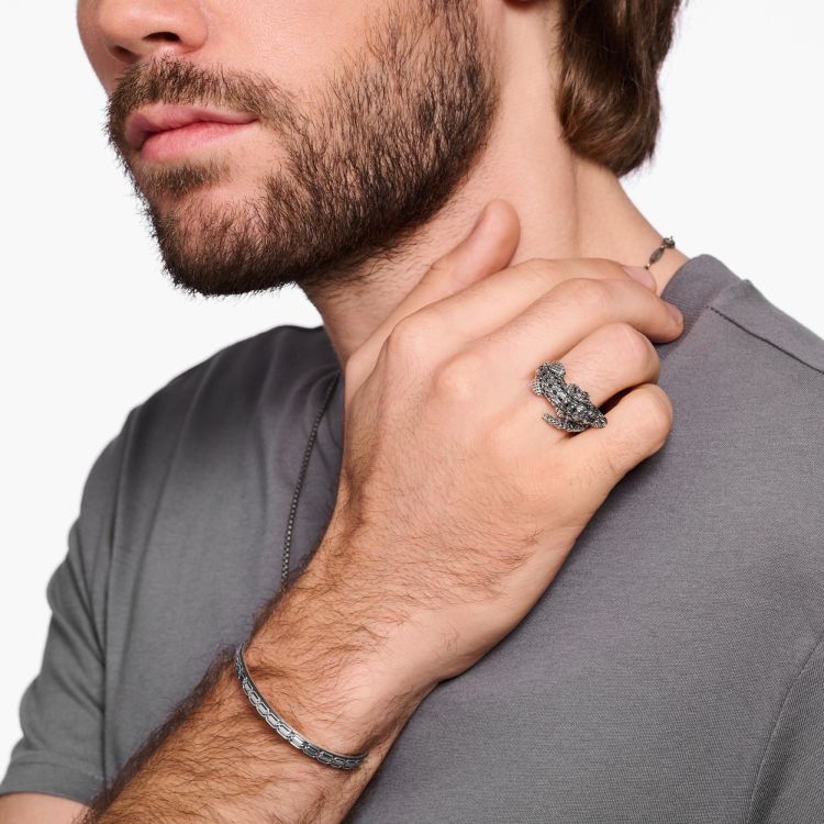 Ring gemaakt van gerecycled 925 sterling zilver, zwartgeblakerd in de vorm van een kronkelende krokodil