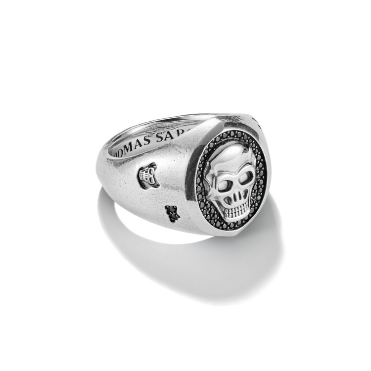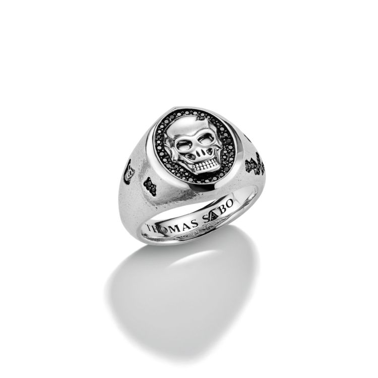 Zilveren zegelring schedelreliëf Rebelleniconen