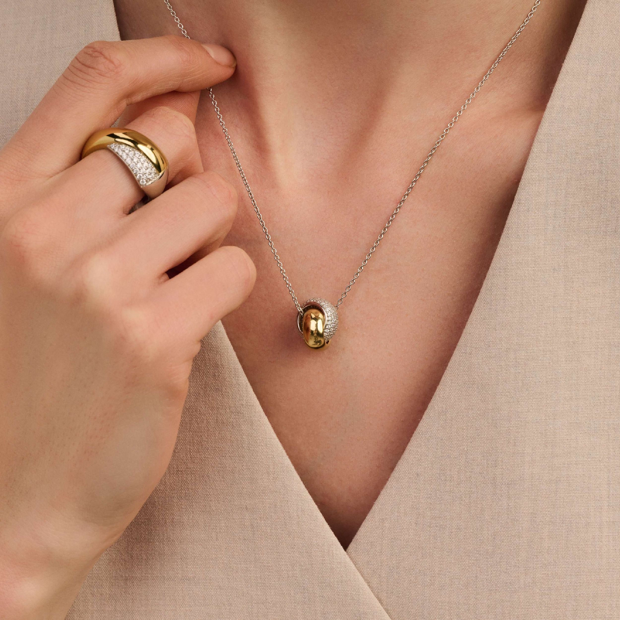 • Ronde, gelaagde silhouetten • Iconische bi-colour ontwerpen • Ook verkrijgbaar in mono- en tri-colour • 925 sterling zilver met platinum, goud- of roséplating • Verfijnde pavé details • Ontworpen om te combineren