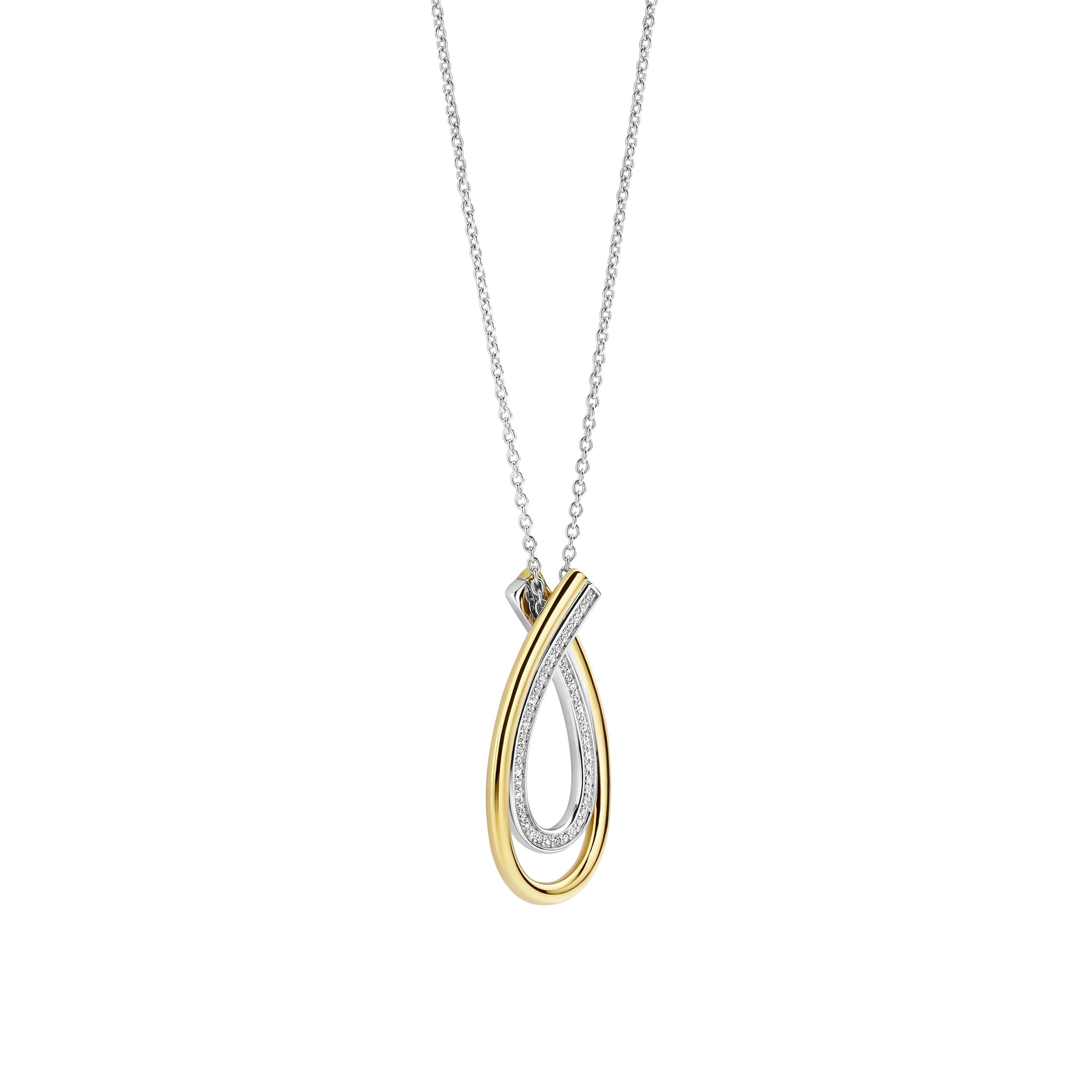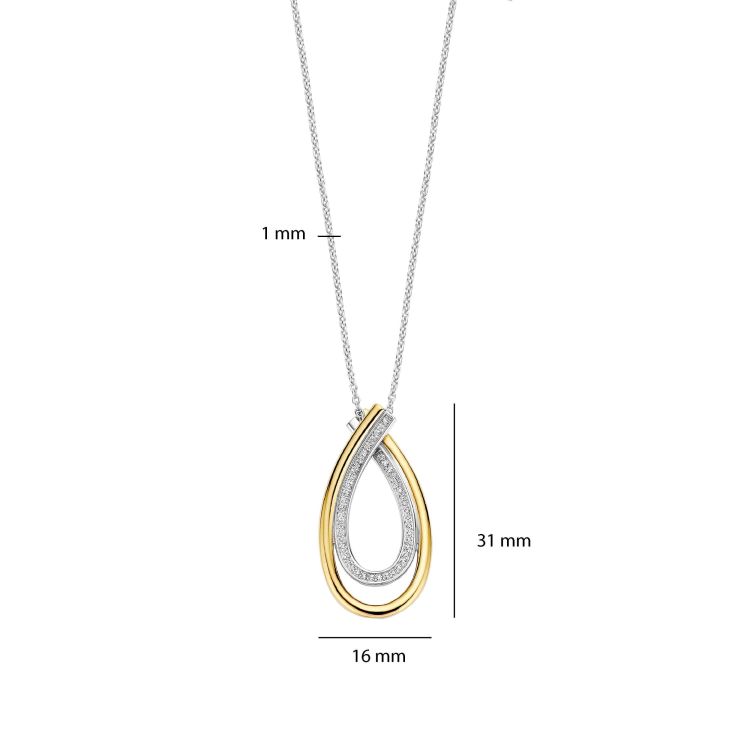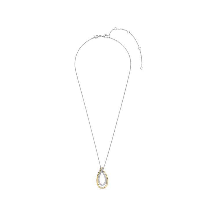 Deze Organic Zirkonia ketting is vervaardigd uit hoogwaardige kwaliteit 925 sterling zilver en heeft een verfijnd, sculpturaal ontwerp. Het organisch gevormde element combineert een goudkleurige afwerking met een zijde die is bezet met zirkonia steentjes. De zachte lijnen en de open ruimte tussen de vormen geven het ontwerp diepte en zorgen voor een elegant, vloeiend silhouet met een subtiel lichtspel.