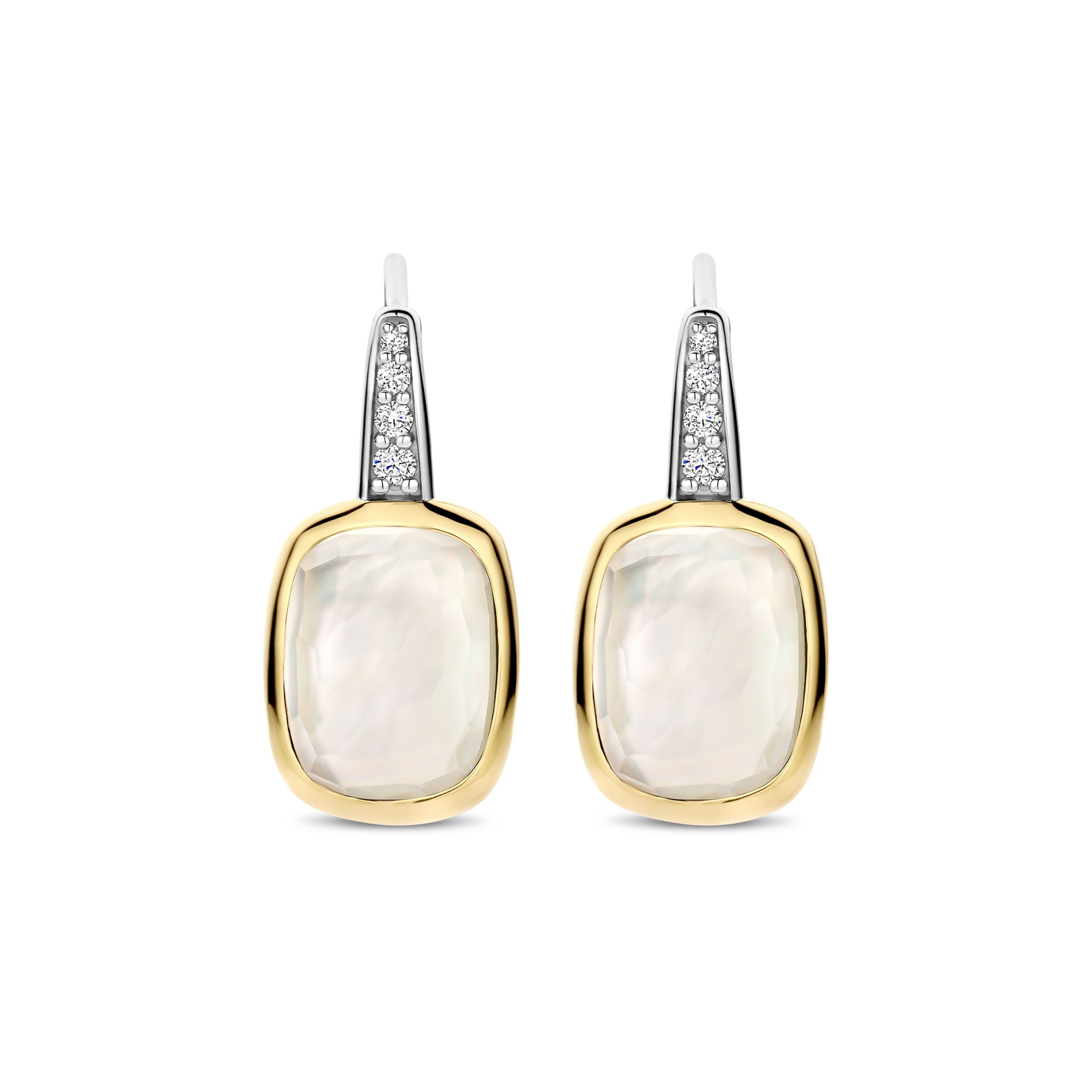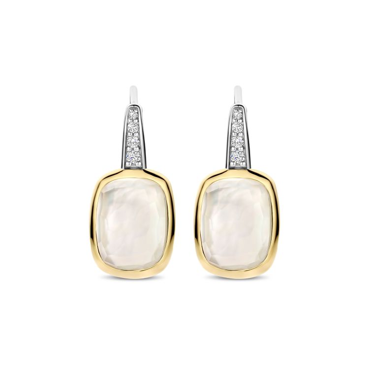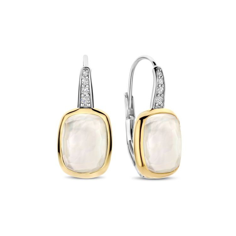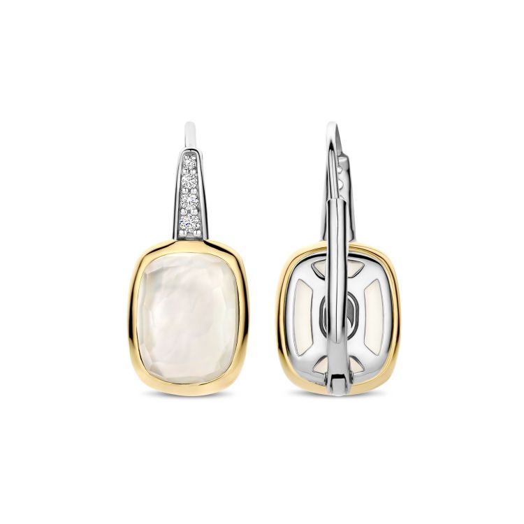 Straal tijdloze elegantie uit met deze TI SENTO vergulde oorbellen 78041MW. Vervaardigd uit 925 sterling zilver zijn deze verfijnde leverback oorbellen voorzien van glanzende parelmoerstenen, geslepen in een zachte kussenvorm en omlijst door een gladde goudkleurige randzetting. De platinakleurig vergulde haken zijn pavé gezet met briljant geslepen witte zirconia, wat een vleugje fonkeling toevoegt dat de parelmoerachtige glans van de stenen prachtig aanvult. Dankzij hun subtiele beweging en lichtreflecterende afwerking zijn ze perfect om een dagelijkse look te verfraaien of extra verfijning toe te voegen aan een avondoutfit. Nikkelvrij en hypoallergeen, deze oorbellen zijn gemaakt voor de gevoelige huid en blijvende elegantie.