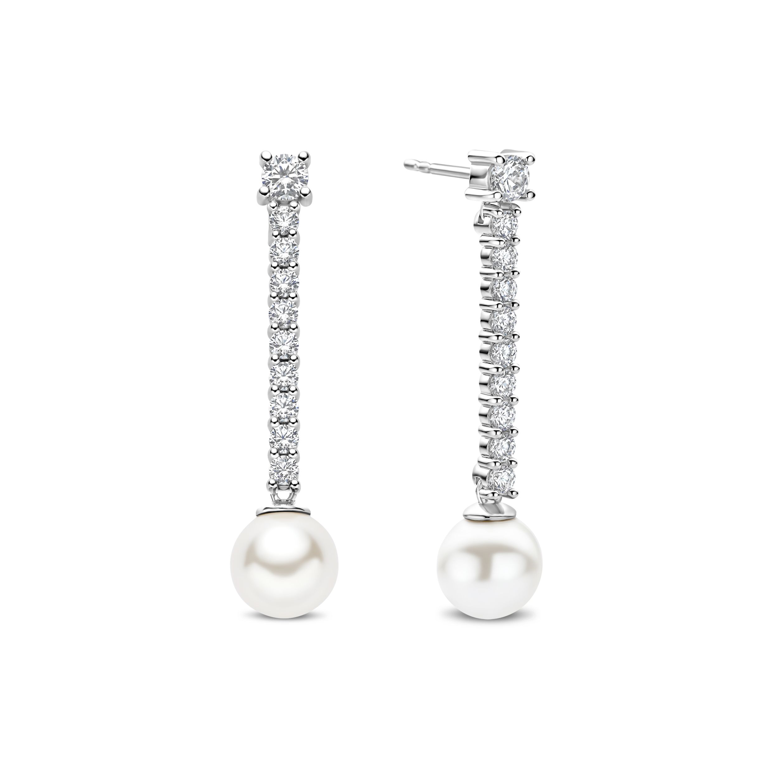 Deze parel oorbellen vormen een subtiele statement oorbel met een elegante uitstraling. De lengte geeft het ontwerp een moderne touch, terwijl de parel en zirkonia verwijzen naar een klassieke stijl. Hierdoor passen deze oorbellen moeiteloos bij een minimalistische sieraden look, maar komen ze ook prachtig tot hun recht als verfijnd accent bij een meer uitgesproken outfit. 78070PW Parel oorbellen