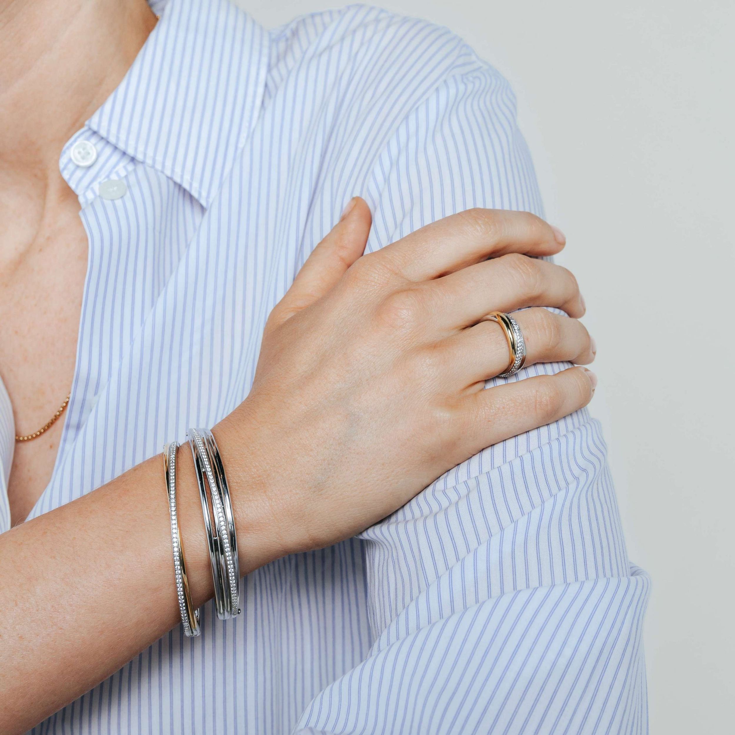 Geniet van hedendaagse elegantie met deze TI SENTO vergulde zilveren ring 12343ZY. Dit boeiende stuk heeft twee golvende banden die elkaar sierlijk kruisen, waardoor een dynamisch en visueel opvallend ontwerp ontstaat. De ene band is versierd met een oogverblindende bestrating van witte zirkonia-stenen, terwijl de andere is verguld met stralend geelgoud. Het contrast tussen romantische bestrating en warm, rijk geelgoud geeft een betoverend tintje aan je handen. Deze ring is gemaakt van 925 sterling zilver en verguld met platina voor blijvende schittering, en is een bewijs van moderne luxe. De vloeiende lijnen en de harmonieuze mix van materialen maken het tot een werkelijk uitzonderlijk stuk. Til je dagelijkse look naar een hoger niveau met dit verfijnde accessoire. Deze nikkelvrije en hypoallergene ring is gemaakt met zorg voor de gevoelige huid en zorgt voor langdurig comfort en kwaliteit.