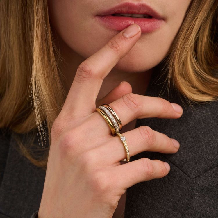 • Ronde, gelaagde silhouetten • Iconische bi-colour ontwerpen • Ook verkrijgbaar in mono- en tri-colour • 925 sterling zilver met platinum, goud- of roséplating • Verfijnde pavé details • Ontworpen om te combineren