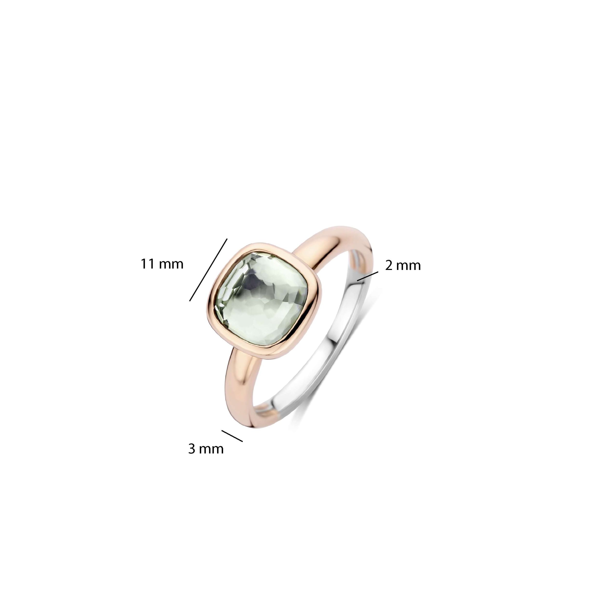 Deze roségoudkleurigee ring met groene cushion steen is vervaardigd uit hoogwaardige kwaliteit 925 sterling zilver en heeft een verfijnd, helder ontwerp. De ring is afgewerkt met een groene cushion geslepen steen, die door zijn zachte facetten diepte en een subtiel kleurspel creëert. De roségoudkleurigee plating omlijst de steen op elegante wijze en geeft het geheel een warme, moderne uitstraling.