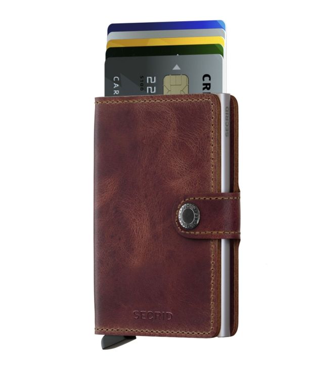 Miniwallet Vintage Brown is gecorrigeerd leer, gemaakt in Nederland van Europese runderhuiden.